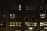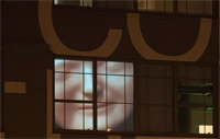 ITINERANTS: Multiple video projections onto various buildings and objects. Itinerant faces contemplate the surrounding space and activities.